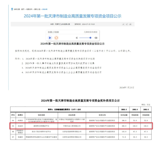 2024-10-28中國化學天辰公司入選2024年第一批天津市制造業高質量發展專項資金項目